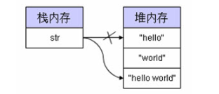 实际上来讲,字符串变量的改变实际上是改变的内存空间的地址指向,而本身的字符串内容没有任何的变化,所以,在开发中一下的操作代码绝对要避免: