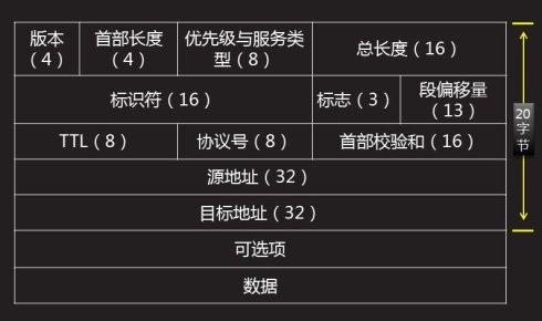 - IP Header =20 Byte(without options field),数据在IP层称为Datagram,分片称为Fragment。