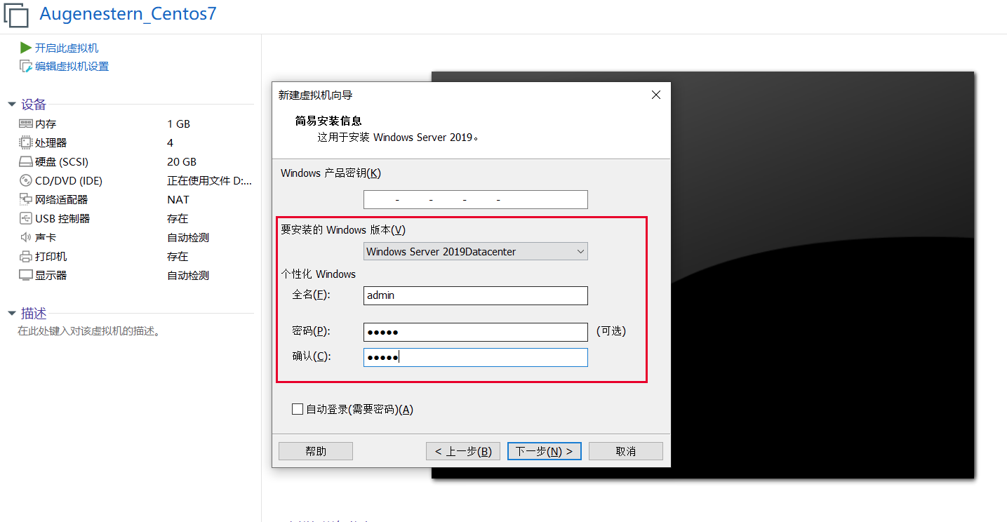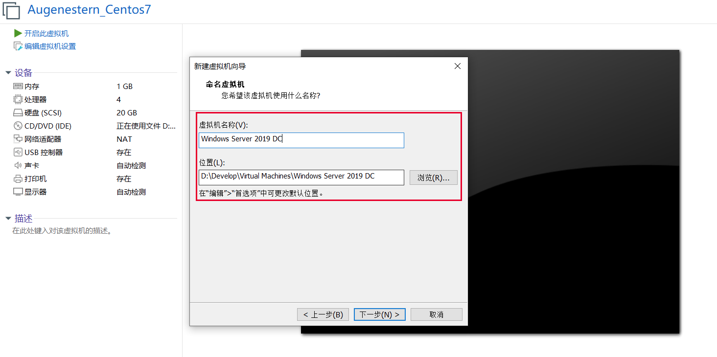 Windows Serve 2019要作为域控服务器,所以进行标记,我们设置虚拟机名称为Windows Server 2019 DC