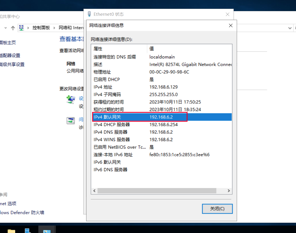 详细信息 -> 查看网关,这边的 IPv4默认网关是