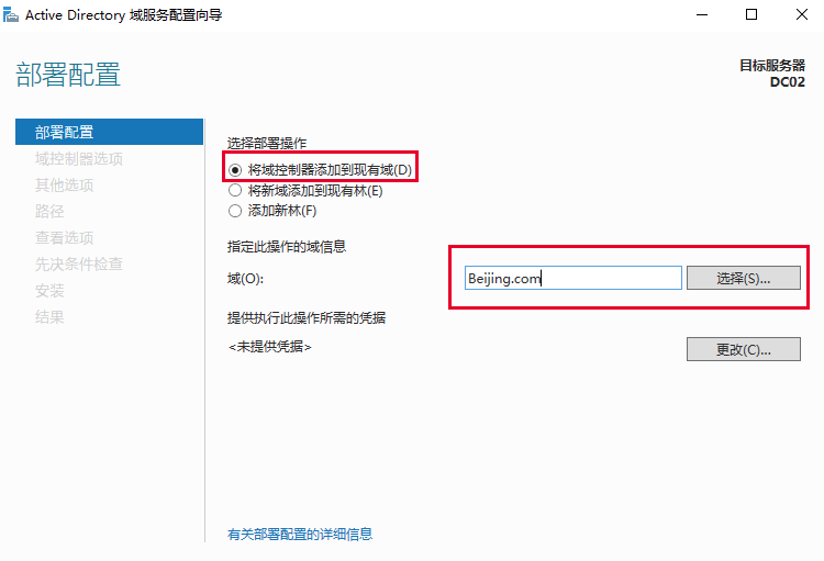 设置DC02的优先级,DC01设置为优先级最高的“1”,那么DC02的优先级设置为“2”。DC01出现故障时,DC02继续对外提供服务。最后点击【下一步】