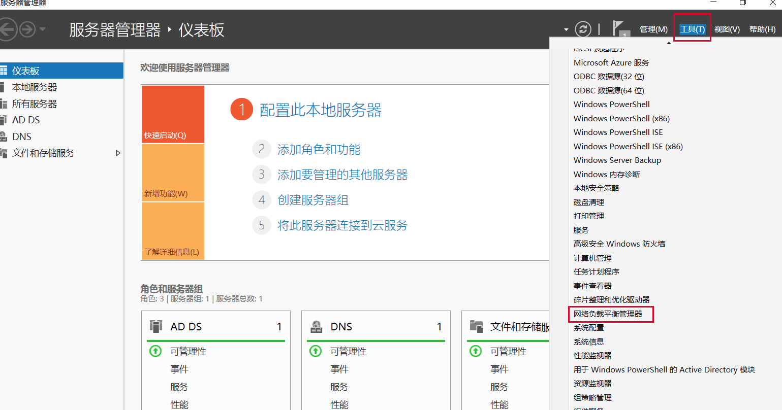 - 在DC01打开服务器管理器 - 工具 - 网络负载平衡管理器