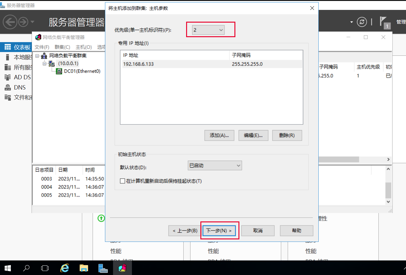 - 在【优先级】中选择最高级【1】,即DC01在该群集中优先对外提供服务,点击【下一步】