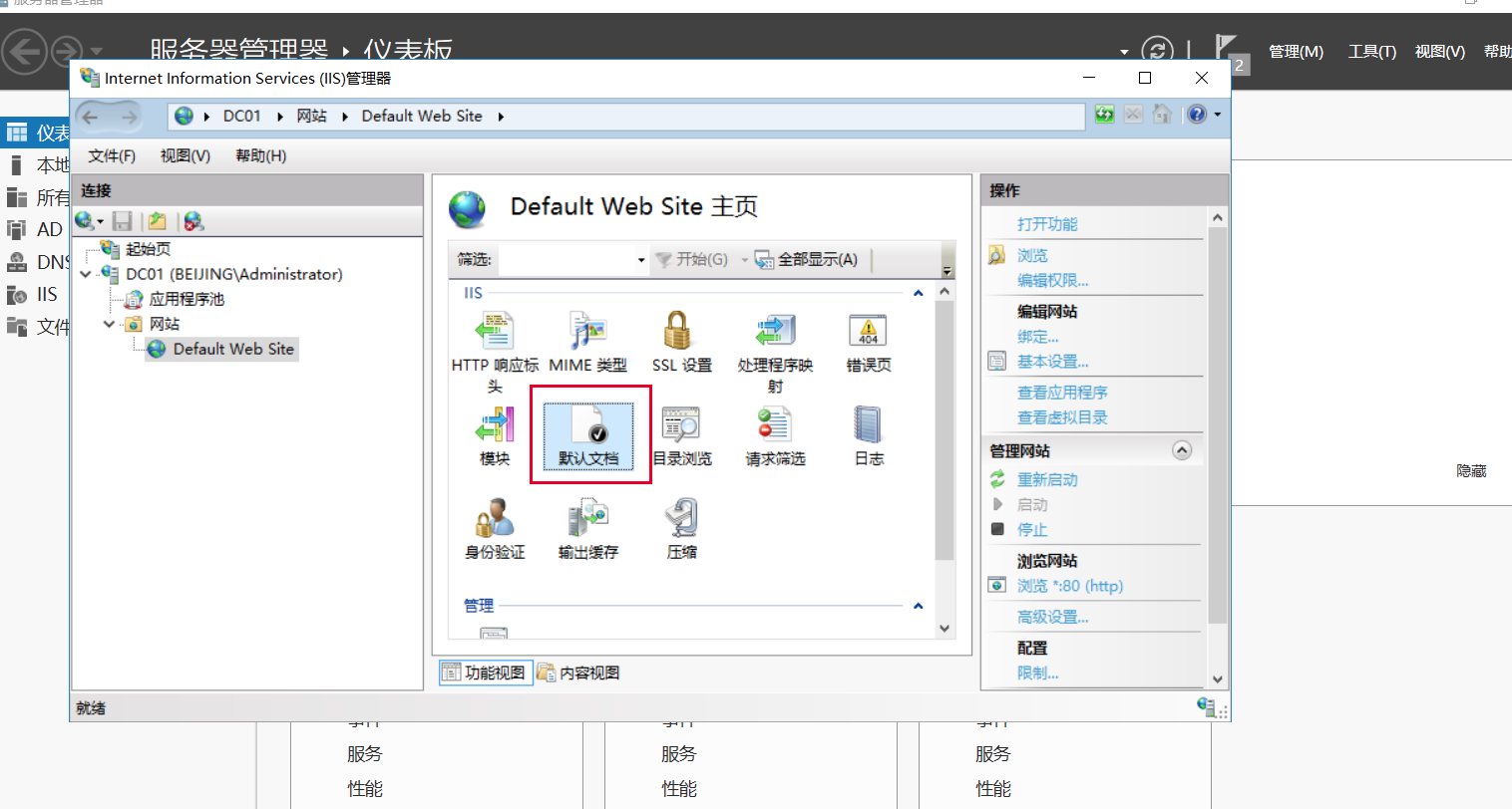 - 在DC01的浏览器中测试Web站点,打开浏览器输入: