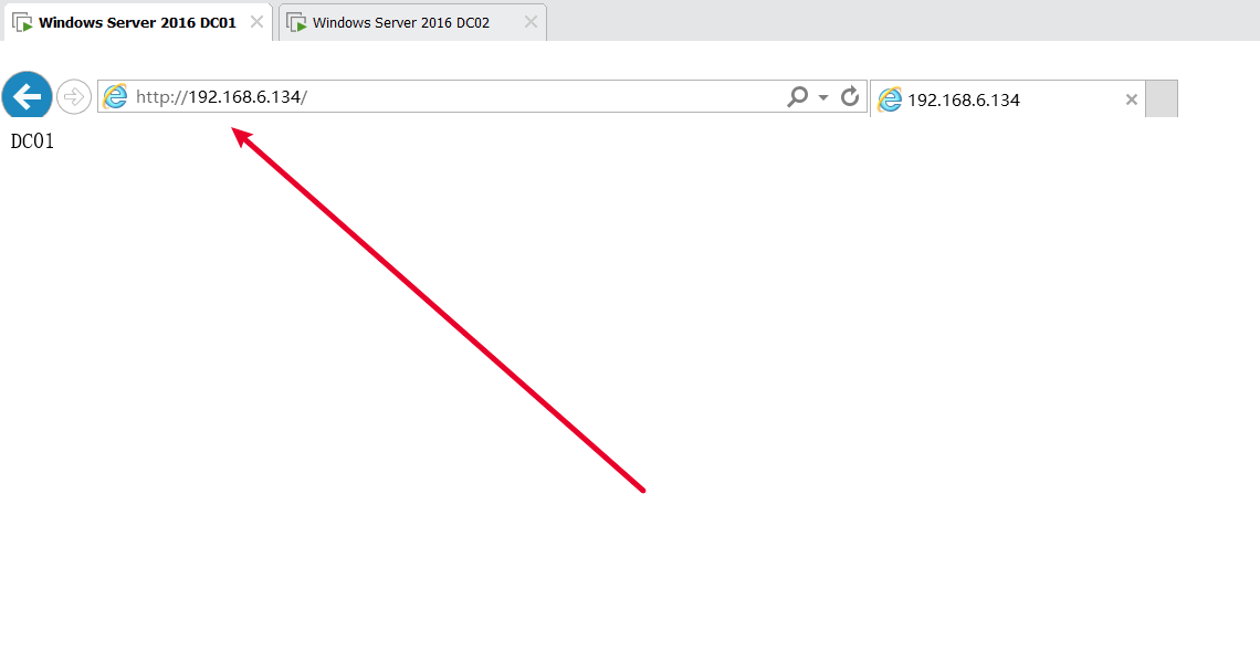 http://192.168.6.134,显示内容为:DC01,说明Web站点修改成功。