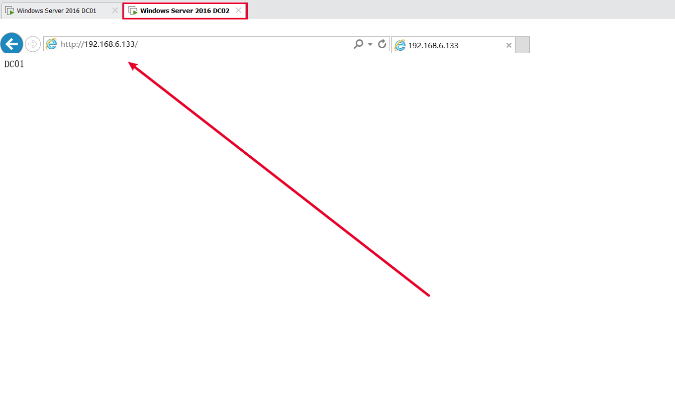- 对DC02执行相同的操作步骤,Web显示内容也为DC01