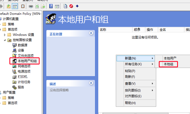 - 计算机配置 → 首选项 → 本地用户和组 → 右键 新建 本地组