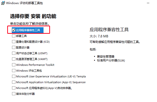 下载后只需要勾选安装 “应用程序兼容行工具”