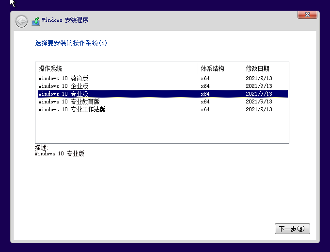 - 选择操作系统类型,一般选专业版就够用了,想要最全的功能可以选择专业工作站版