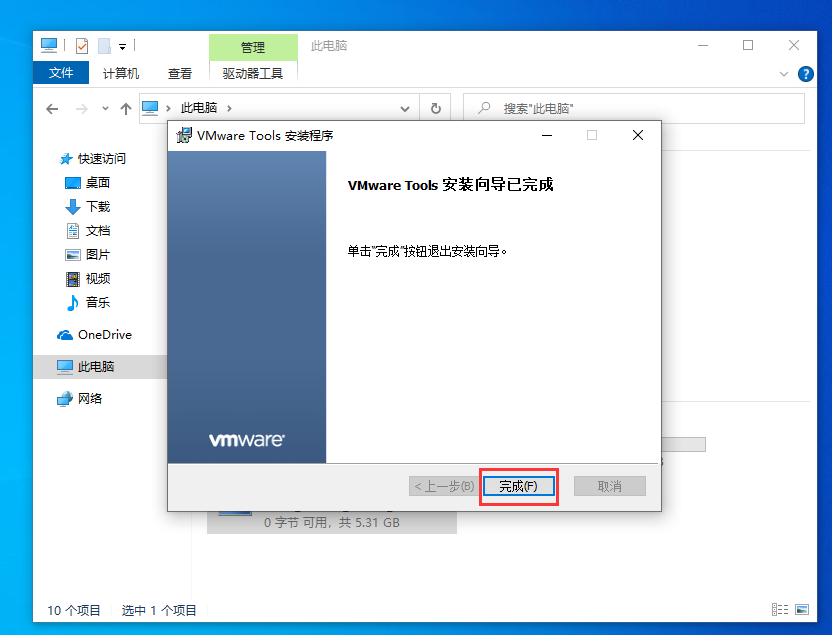 需要注意:如果虚拟机没有自动弹出安装的对话框,可以主动点进文件资源管理器中点击安装