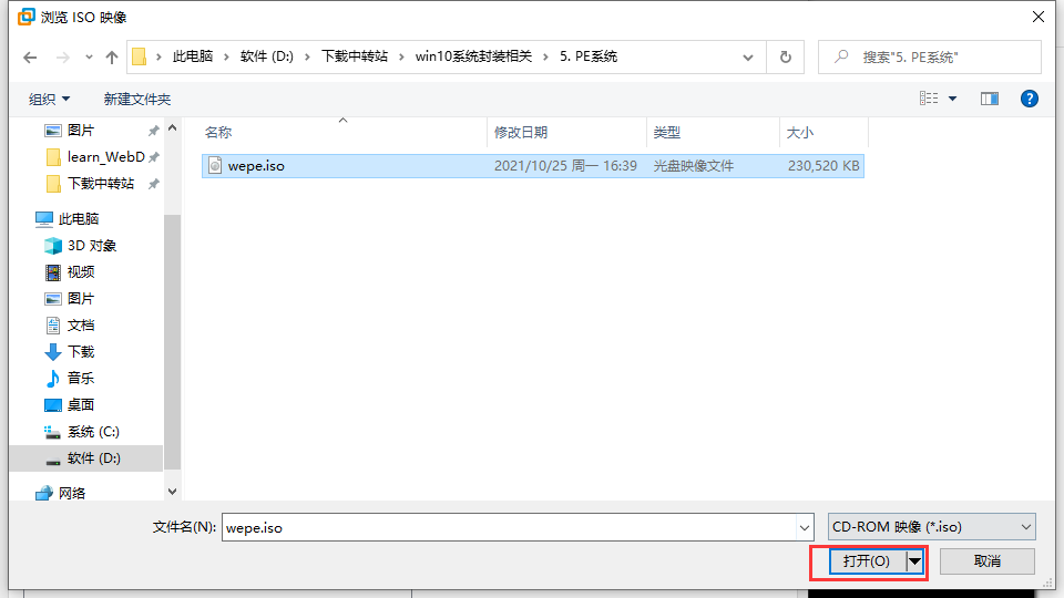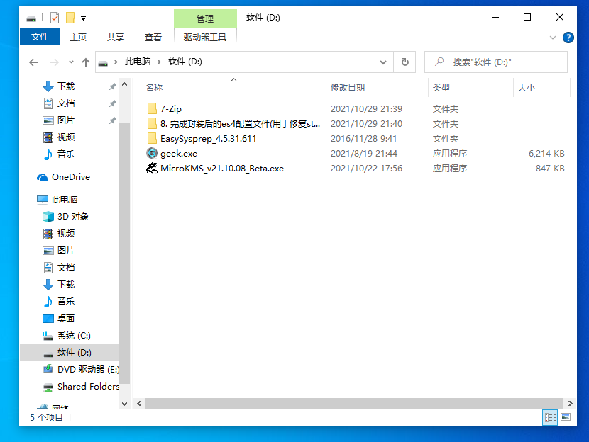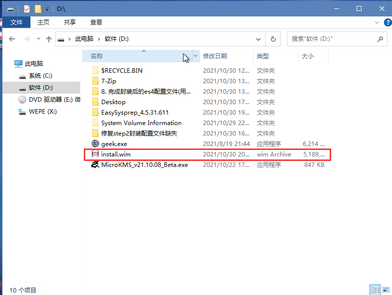 **注意: 一定不能放到C盘, 这会影响到封装的系统的纯净性