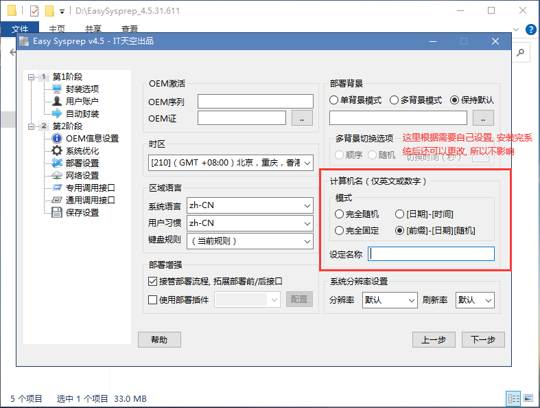 再次填写的信息要与第10-15步完全一致,这样配置文件和最终封装的系统才不会有冲突! 一定要完全一致