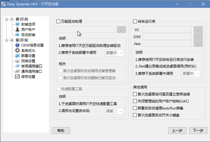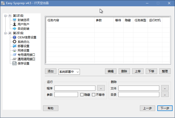 这一步用于添加部署任务,添加的任务可以是:系统部署前、系统部署中、系统部署后、第一次登陆、首次进入桌面等。 但是一般不在这里执行任务,所以直接点击”下一步”,