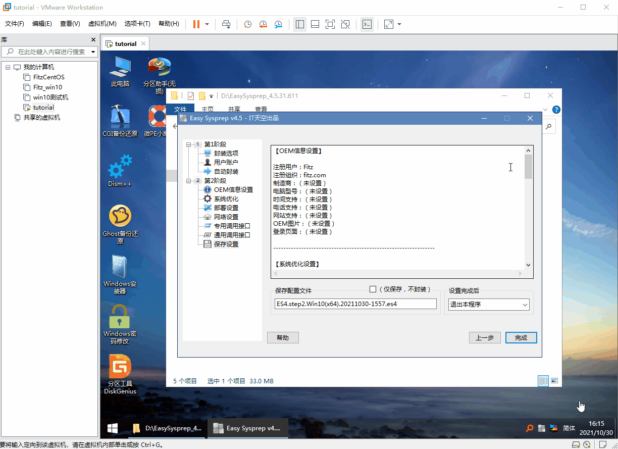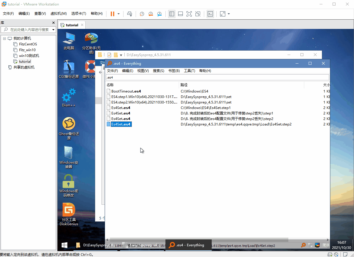 封装工具EasySysprep解压到D盘 – 将完成封装后的es4配置文件(用于修复step2丢失)、geek、7zip复制到D盘