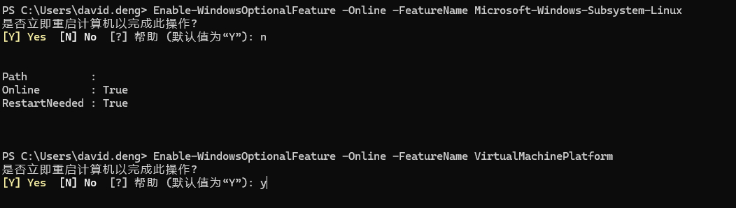完成后问你是否要重新启动,我们回复N,然后输入第二条命令,完成后同样会问是否要重启,这时我们回答Y,进行重启